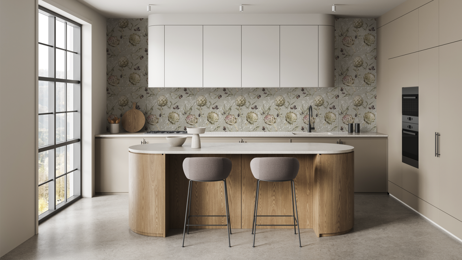 Это, по сути, любая из описанных схем, дополненная массивным столом-тумбой в центре кухни, который называют островом. Он служит дополнительной рабочей зоной, местом для хранения и даже обеденной площадкой. Такой подход значительно расширяет функциональность кухни, но требует достаточно большого пространства - обычно не менее 18–20 м². Важно, чтобы вокруг острова оставалось место для свободного перемещения и комфортной работы.
