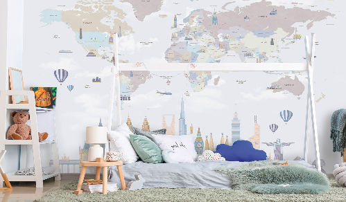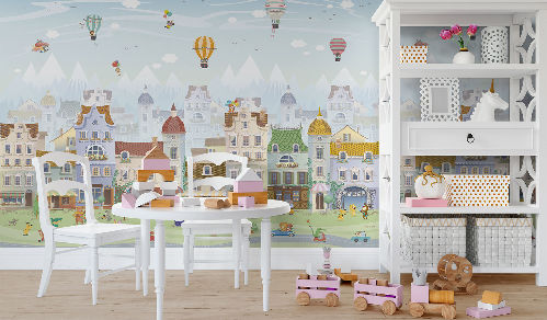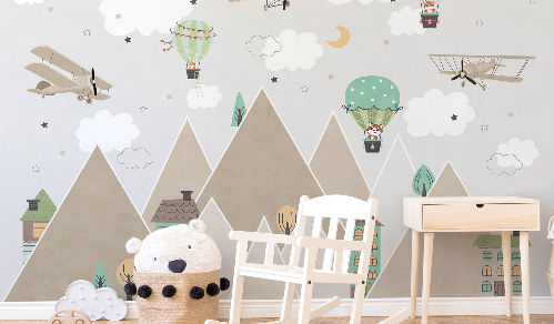 Вы обязательно подружитесь с этими забавными героями. Милые зверюшки живут в своем маленьком городе, в лесу, путешествуют на воздушных шарах и велосипедах, самолетах. Также сюда входят новые детские карты мира. Все дизайны выполнены в нескольких цветовых вариациях, чтобы вы могли подобрать гармоничный вариант для вашего проекта комнаты.