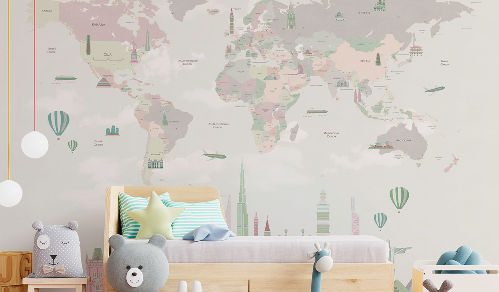 Вы обязательно подружитесь с этими забавными героями. Милые зверюшки живут в своем маленьком городе, в лесу, путешествуют на воздушных шарах и велосипедах, самолетах. Также сюда входят новые детские карты мира. Все дизайны выполнены в нескольких цветовых вариациях, чтобы вы могли подобрать гармоничный вариант для вашего проекта комнаты.